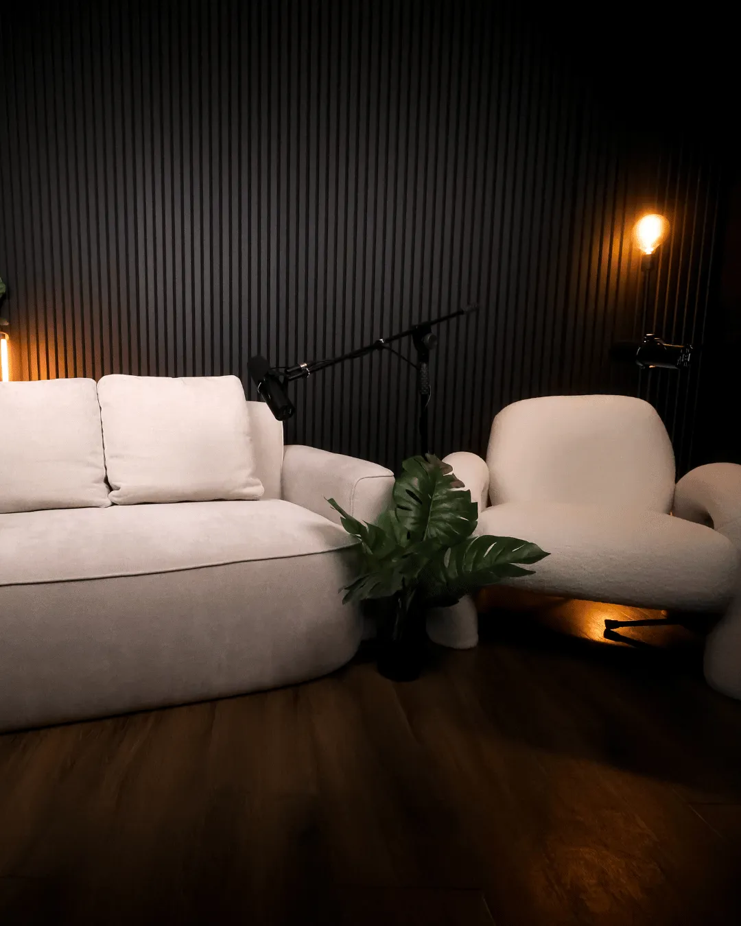 Our studio comfortably accommodates up to three speakers.